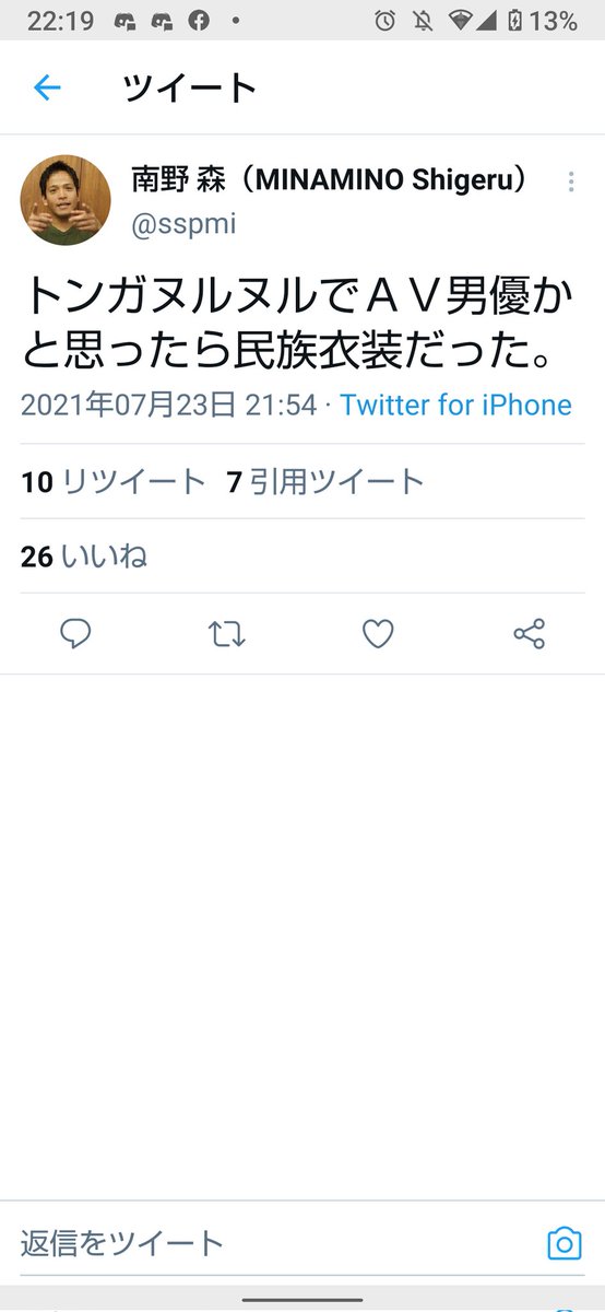 ユーミンに「死んだ方がいい」と発言した京都精華大学の白井聡はあれだけ袋叩きに遭って大学がHPで謝罪までしたのに、五輪で民族衣装のトンガ代表に「ヌルヌルでAV男優かと思った」と発言した九州大学の南野森は全くお咎めなしだったのは不思議だ。白井より南野の方がよほど相手を蔑視した発言なのに。 twitter.com/GonzoTambourin…